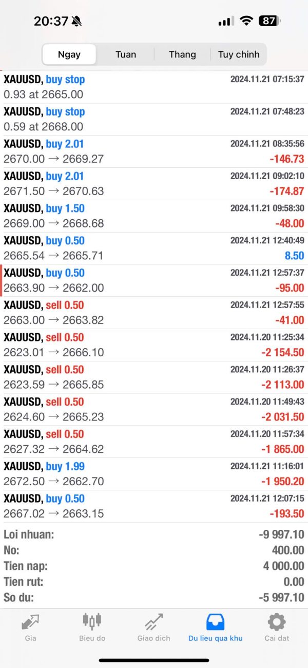 Sàn tác động dẫn đến trượt giá cháy tài khoản
