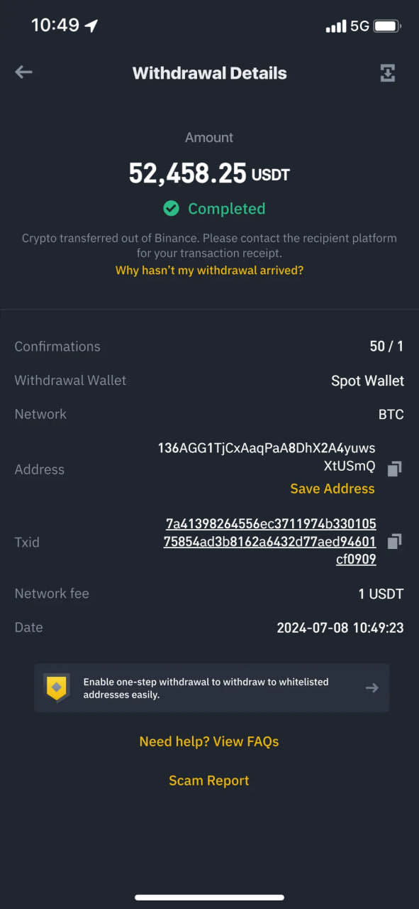ฉันจ่ายเงินค่าภาษีเข้าไปแล้ว8% และเป็นจำนวนเงินทั้งหมดคือ52,458.25ดอลล่าร์ และเมื่อฉันจ่ายไปแล้ว ฉันยังไม่สามารถถอนเงินได้จากแพลตฟอร์มนี้ และแพลตฟอร์มนี้เป็นแพลตฟอร์มที่หลอกลวงคน ทำให้เสียเงิน และไม่สามารถถอนเงินได้ เป็นแพลตฟอร์มปลอม