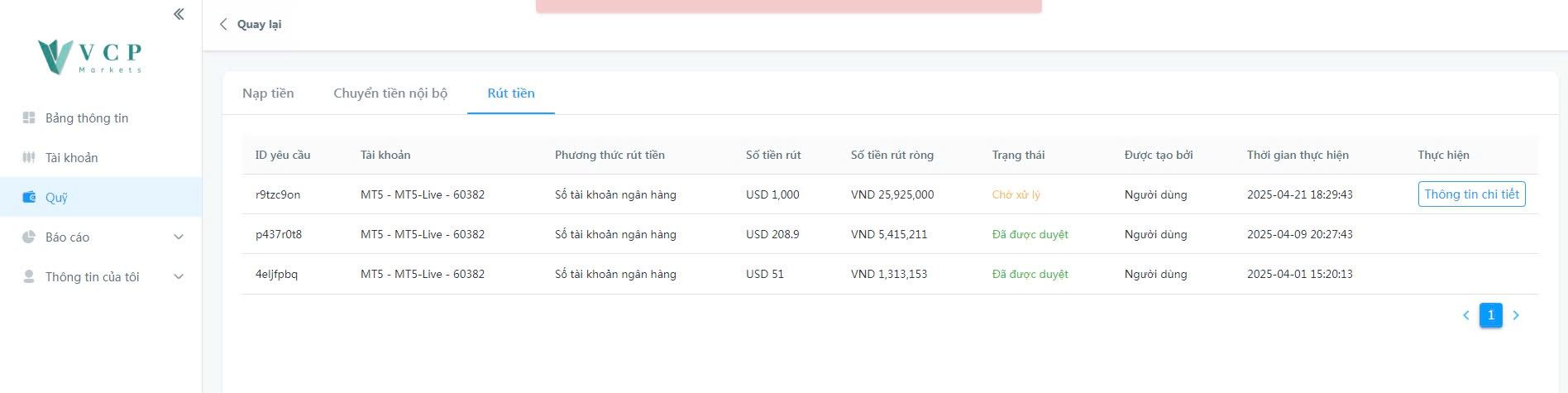 Khóa tài khoản, không duyệt rút tiền