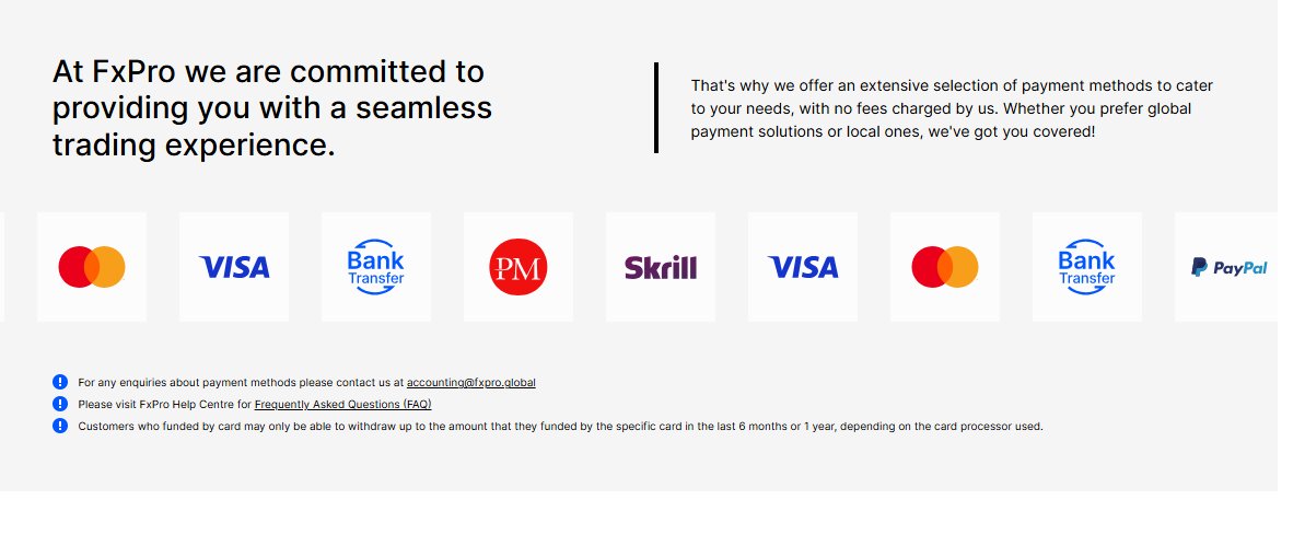The fast withdrawals are one of the good features of trading here, I get to choose from up to 10 various payments and have it seamless and smooth. the fxpro wallet allows transfer of funds easily to the trading account and helps manage risks.