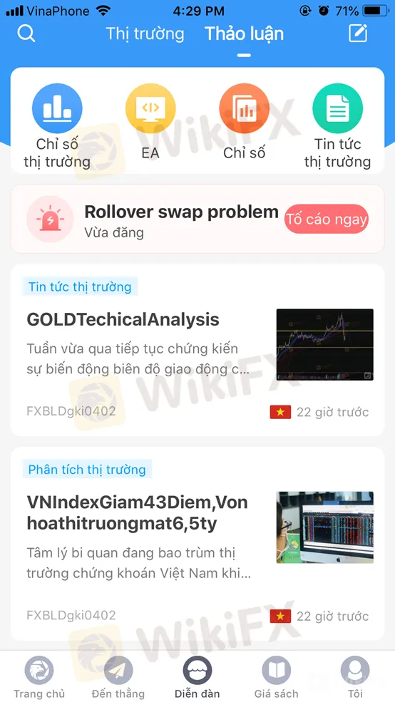Kể từ khi ra mắt ứng dụng, WikiFX luôn hướng tới mục tiêu trở thành chuẩn mực của ngành forex và được đánh giá cao trong lĩnh vực này. Hiện tại, tính năng mới nhất – Diễn đàn WikiFX – sau thời gian nghiên cứu và phát triển đã được chính thức ra mắt nhằm tạo cho cộng đồng một nền tảng đa chức năng, chia sẻ thông thin, phân tích thị trường, trao đổi thông tin sàn cũng những thông tin hữu ích khác trong ngành!