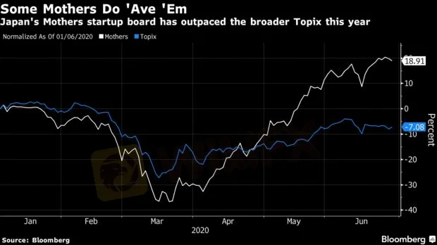 Tại Nhật Bản, chỉ số Tokyo Stock Exchange Mothers – theo dõi nhiều start-up công nghệ niêm yết, đã tăng vọt khi đại dịch bùng phát, xu hướng bắt đáy hầu hết các cổ phiếu vốn hóa nhỏ đã diễn ra. Cổ phiếu của toàn bộ 320 trừ 7 công ty thuộc chỉ số này đều tăng điểm kể từ đầu tháng 4, từ công ty sản xuất vắc-xin Agnes Inc. tăng tới 235% cho đến Precision System Science Co. – đang phát triển công nghệ xét nghiệm virus, đã tăng vọt hơn 480%.
