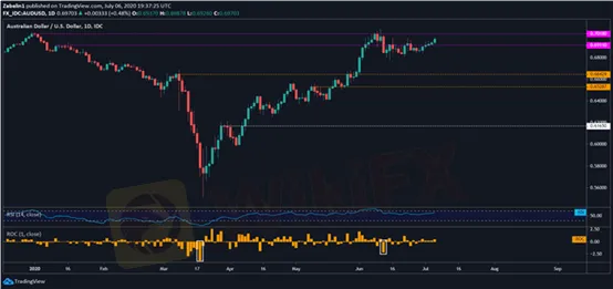 Ba chỉ số chứng khoán lớn của Mỹ đều tăng vào thứ Hai. Tâm lý rủi ro có thể tiếp tục bao trùm thị trường châu Á-Thái Bình Dương, đẩy thị trường chứng khoán châu Á-Thái Bình Dương tăng cao. Quyết định lãi suất tháng 7 sắp tới của RBA là sự kiện mang tính quyết định lớn nhất trong thị trường giao dịch châu Á-Thái Bình Dương, AUD có thể trở thành tâm điểm.