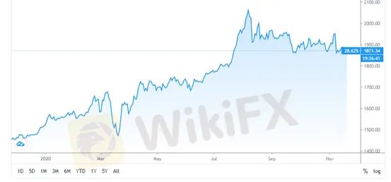 Thị trường tuần này bao trùm những tin tức tích cực về vắc-xin Covid-19, tạo áp lực lớn lên giá vàng, vào thứ Tư giá vàng đã chạm mốc 1870. Tuy nhiên, do môi trường lãi suất toàn cầu đang ở mức thấp và bảng cân đối kế toán tăng, giá vàng hiện tại vẫn còn đà tăng.