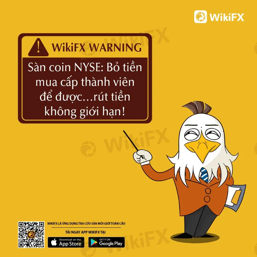 Nạn nhân của sàn coin NYSE (website: nyse6.com) cho biết bạn đã tham gia đợt sự kiện do sàn tổ chức, phải chơi thắng 8 lần số tiền gốc hoặc phải nạp thêm 10000 USDT (tương đương 9000 USD) để đạt được cấp thành viên và rút tiền không giới hạn, nếu không thì sẽ không được rút.