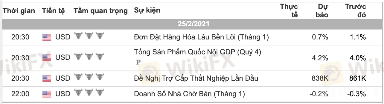 Các dữ liệu quan trọng phát hành trong ngày: