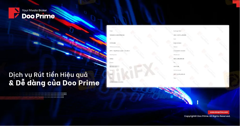 Là một nhà môi giới trực tuyến toàn diện hàng đầu, Doo Prime nhận thức rõ tầm quan trọng của việc rút tiền đối với khách hàng. Trong những năm tới, chúng tôi sẽ tiếp tục cố gắng mang đến cho khách hàng trải nghiệm rút tiền an toàn hơn, thuận tiện hơn và hiệu quả hơn. Đồng thời, giữ vững giá trị của chúng tôi và những cam kết với khách hàng.