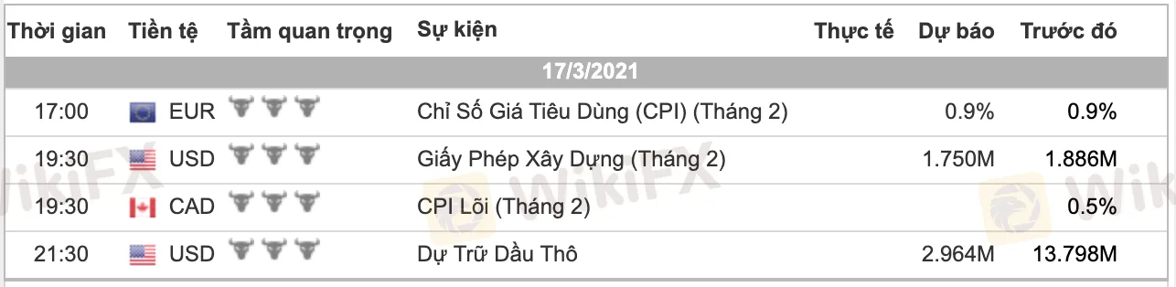 Các dữ liệu quan trọng phát hành trong ngày: