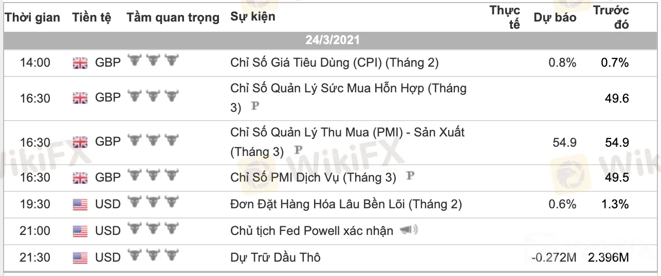 Các dữ liệu quan trọng phát hành trong ngày: