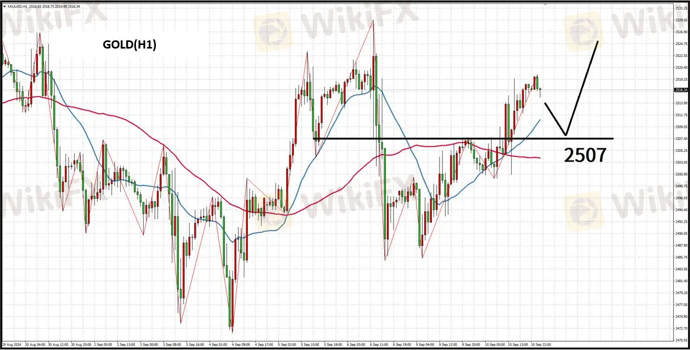 Biểu đồ vàng khung 1 giờ cho thấy các điểm cao và thấp đang tăng dần, đường trung bình động có xu hướng đi lên, phản ánh lực mua đang mạnh lên. Nếu quá trình kiểm tra hỗ trợ trước đó không bị phá vỡ, xu hướng có thể tiếp tục tăng. Do đó, khuyến nghị thực hiện lệnh mua ngắn.