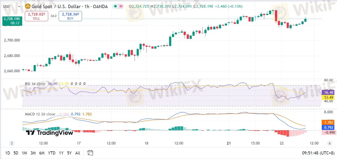 Giá vàng giao dịch ngay dưới mức cao kỷ lục, giảm 0,09%, do lợi suất trái phiếu kho bạc Mỹ tăng hơn 10 điểm cơ bản, đạt mức 4,192%. Dòng tiền trú ẩn an toàn tiếp tục chảy vào trong bối cảnh căng thẳng tại Trung Đông và bất ổn xung quanh cuộc bầu cử Mỹ khi các cuộc thăm dò cho thấy cuộc đua sát sao giữa Harris và Trump. Các quan chức của Cục Dự trữ Liên bang Mỹ (Fed) ám chỉ việc cắt giảm lãi suất dần dần, nhưng việc cắt giảm 25 điểm cơ bản tại cuộc họp tháng 11 vẫn được định giá cao.