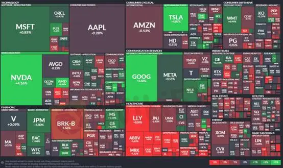 (Hình 1: Bản đồ nhiệt S&P – Nguồn: FINVIZ)