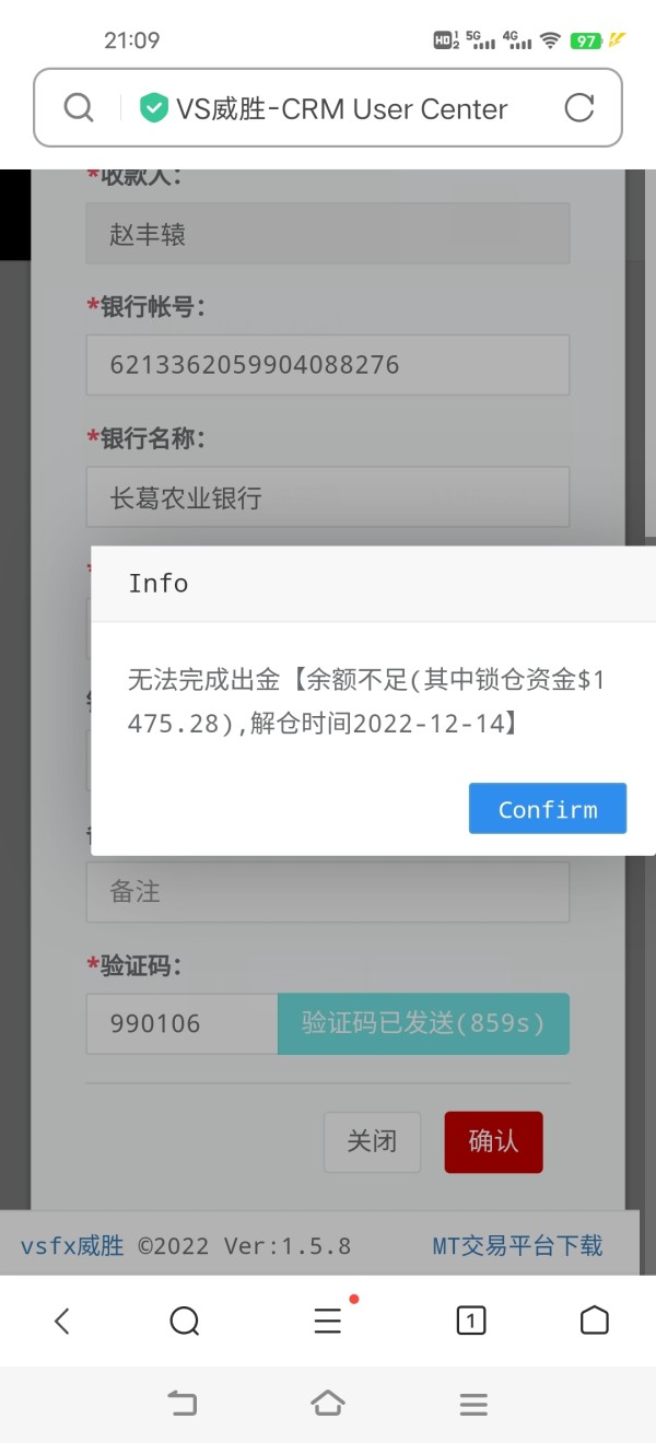 威胜外汇无法出金,不再交易