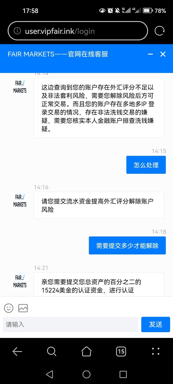该用户未证明是FAIR MARKETS的交易者