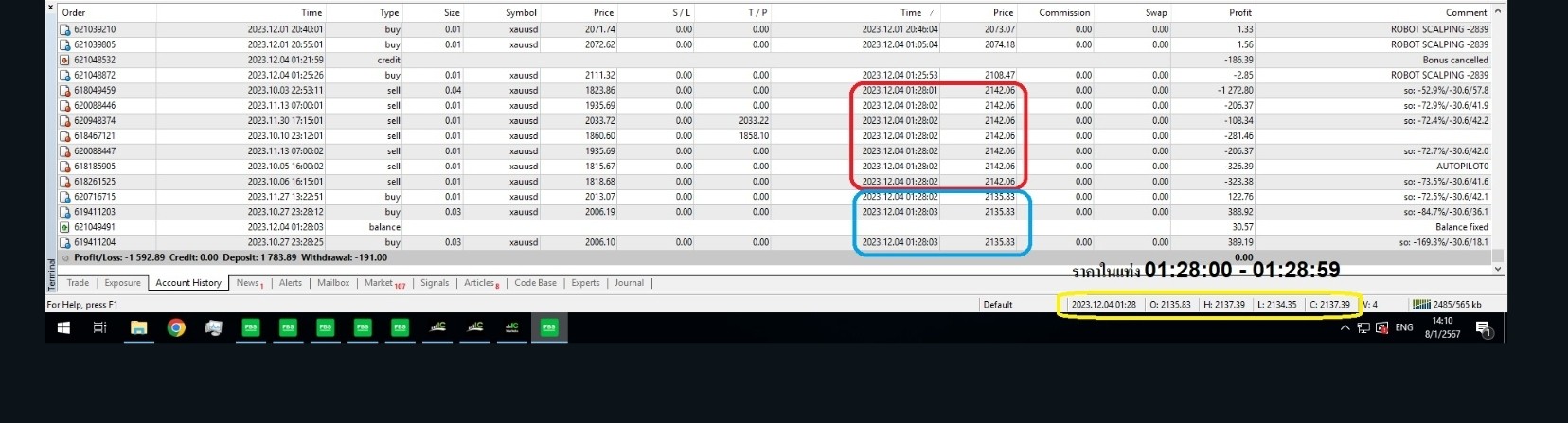 เดิม xauusd spread ประมาณ ไม่เกิน 40 แต่ในวันที่ 04-12-23 01:28 ถูกปิดสถานะ Sell ด้วย ราคา2142.06 และปิดสถานะ buy ด้วยราคา 2135.83 ตามลำดับ ด้วย spread ที่ถ่างกว่าเดิมถึง 623 จุด หรือมากกว่าปกติ 15 เท่า จึงเป็นสาเหตุให้เกิด so เสียหายทั้งหมด $1,794.96เมื่อสอบถามโบรกตอบกลับว่าปกติ