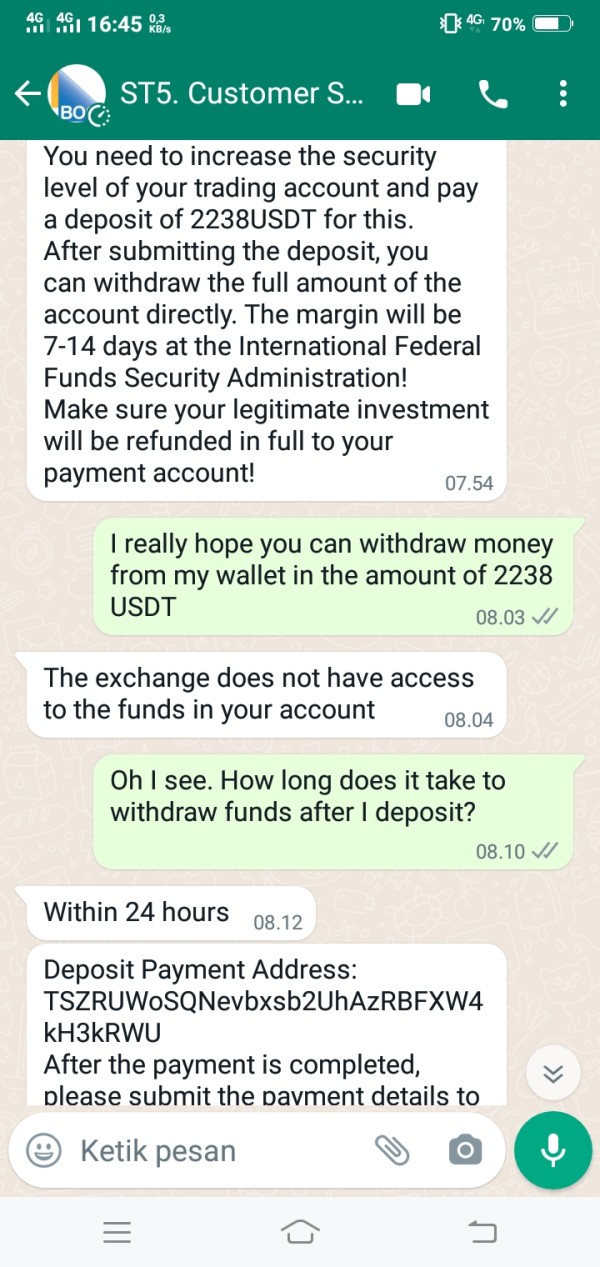 Penarikan dana sejumlah US$ 2238 ditolak dan harus membayar denda sejumlah dana penarikan. Mohon untuk dapat dicairkan agar saya semangat kembali trading pada DBG Markets. Terima kasih.