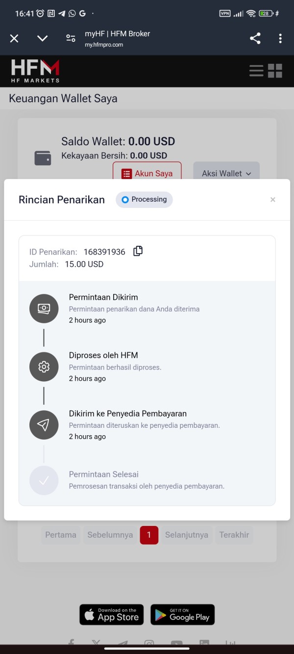 saya melakukan penarikan dana dengan nominal 15$, dan itu sudah 2 jam yang lalu,saldo tersebut belum masuk ke rekening saya