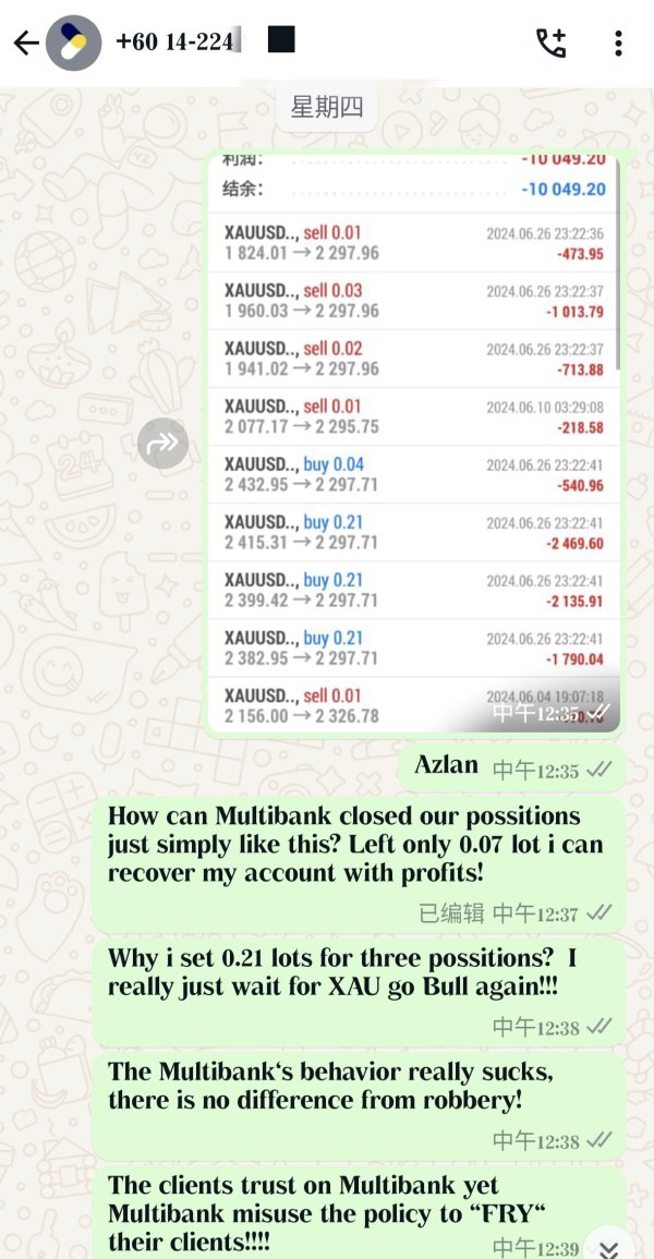 变相诈骗Multibank借撤出马来西亚市场强制平仓