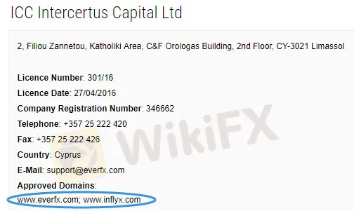 INFLYX受塞浦路斯证券交易委员会(CySEC)监管;其运营者为ICC Intercertus Capital.