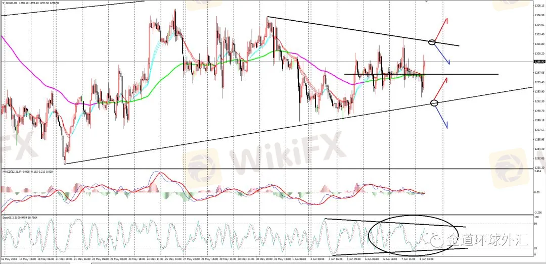 技術上,此前金價跌破1300整數關口後延伸創及1282附近的新低位,期間降速通道的出現以及破立圖形小結構的助推,加之持續下行所累積的獲利盤有結倉調整的慾望及準備,金價反彈形成1300整數關口的重上,並形成1301.5視窗位元的回補後延伸至1307附近,此帶為趨勢下壓線附近的限制承載著較多壓力;金價於1300整數關口上下震蕩整理中持續無法形成此帶的有效突圍,即使期間避險情緒升溫或美元大幅回落調整都未能形成平臺區頂的突破,顯現當前黃金市場投資情緒的缺乏。經關口區域震蕩整理後,上週金價曾出現橫行區底的回破或趨向弱性選擇作為,但僅見及1289附近即落得支持,之後的回測整固仍於此帶穩守顯現小雙底構建稍顯利好,金價再有千三關口附近的測試及確認作為;繼上一交易日金價完成原視窗轉變位元附近的測試及確認後,昨日再有1303附近的測試,但隨後所出現的空頭快速打壓跟此前二次基本相似,持續衝擊關口但始終無法重上或影響到市場投資信心,加之美聯儲議息決議窗口的臨近,加息預期將繼續打壓金價。稍顯利好的是,金價下探中亦未出現三角形區底的突破,日內再有相較快速的反彈表現或指G7峰會期間市場避險需求仍較強烈,將給予金價一定支撐;故建議投資者保持耐心,暫可規範區間進行短線交易,或繼續三角形區頂附近進行高空嘗試。當前低檔暫可關注轉變位1292附近支持,金價下試若有效突破此帶或延伸尋1284/1282附近的支援,甚或延展創新低作為;但若能繼續穩守或繼續三角形內震蕩整理。