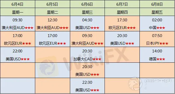 ●外汇黄金行情时间表6月4日-6月8日(重点行情)