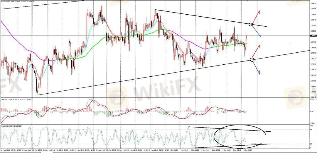 技術上,此前金價跌破1300整數關口後延伸創及1282附近的新低位,期間降速通道的出現以及破立圖形小結構的助推,加之持續下行所累積的獲利盤有結倉調整的慾望及準備,金價反彈形成1300整數關口的重上,並形成1301.5視窗位元的回補後延伸至1307附近,此帶為趨勢下壓線附近的限制承載著較多壓力;金價於1300整數關口上下震蕩整理中持續無法形成此帶的有效突圍,即使期間避險情緒升溫或美元大幅回落調整都未能形成平臺區頂的突破,顯現當前黃金市場投資情緒的缺乏。經關口區域震蕩整理後,上週金價曾出現橫行區底的回破或趨向弱性選擇作為,但僅見及1289附近即落得支持,之後的回測整固仍於此帶穩守顯現小雙底構建稍顯利好,金價再有千三關口附近的測試及確認作為;繼上一交易日金價完成原視窗轉變位元附近的測試及確認後,昨日再有1303附近的測試,但隨後所出現的空頭快速打壓跟此前二次基本相似,持續衝擊關口但始終無法重上或影響到市場投資信心,加之美聯儲議息決議窗口的臨近,加息預期將繼續打壓金價。稍顯利好的是,金價下探中亦未出現三角形區底的突破,日內再有相較快速的反彈表現或指G7峰會期間市場避險需求仍較強烈,將給予金價一定支撐;故建議投資者保持耐心,暫可規範區間進行短線交易,或繼續三角形區頂附近進行高空嘗試。當前低檔暫可關注轉變位1292附近支持,金價下試若有效突破此帶或延伸尋1284/1282附近的支援,甚或延展創新低作為;但若能繼續穩守或繼續三角形內震蕩整理。