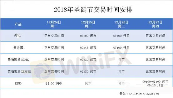 圣诞节将至,Echelon Brokers Financial Solutions(EBFS),易柏国际以下产品交易时间将做相应调整: