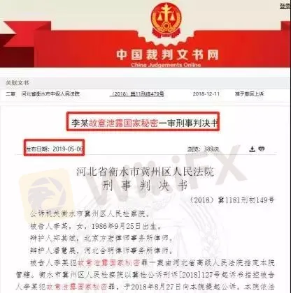 5月6日,裁判文书网上公布了一则《李某故意泄露国家秘密一审刑事判决书》,案中被告通过微信将资管新规的部分内容泄露给前同事,前同事又发到自己的微信群里,这样一传十、十传百、最终造成了恶劣的影响。