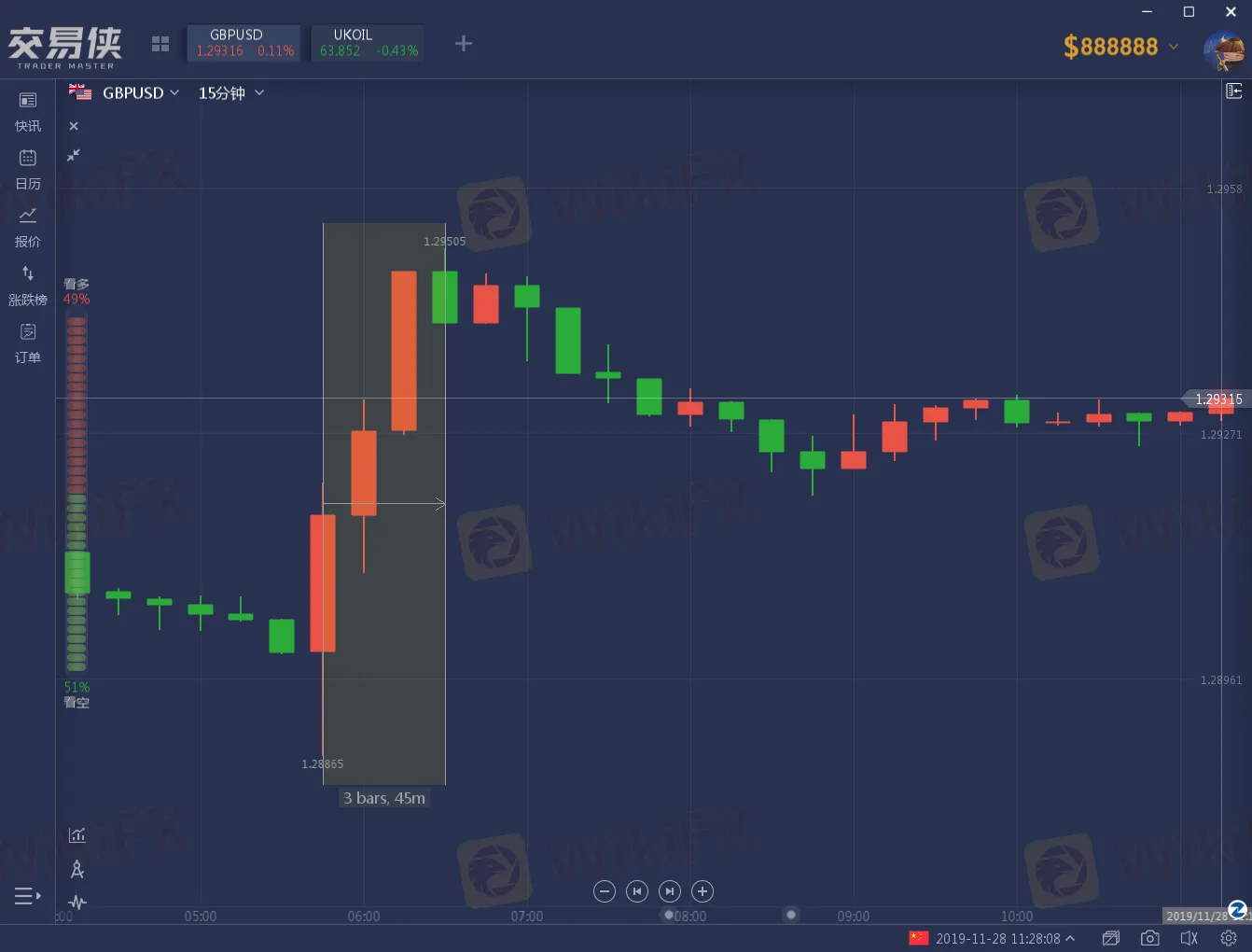周四(11月28日)早间6点左右,英镑出现短线波动,英镑兑美元最低从1.2887上破1.29关口,最高拉升至1.2951,涨逾60点。引出英镑这波行情的是一项民调结果。