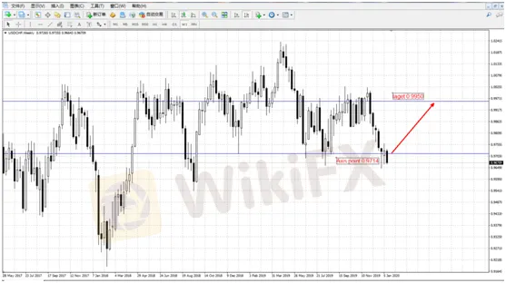 美元对瑞士法郎上半年的轴心点位于0.9712,汇率收在此价格上方,我们温和的看涨汇率上升到0.9950一线的位置。