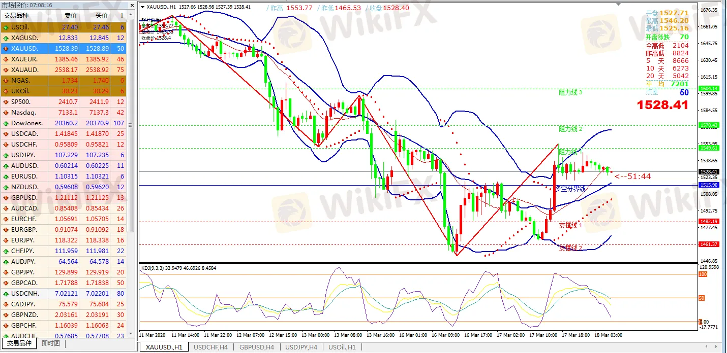 摘要:2020年3月18日 星期三 亚市盘中,黄金位于1528.80美元/盎司水平交投。