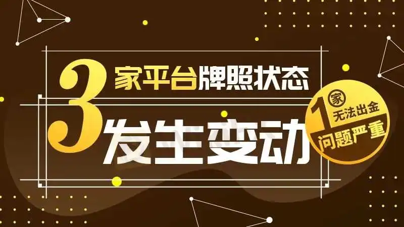 本周共有3家平台牌照状态发生变动,其中有一家当前已经无法出金。