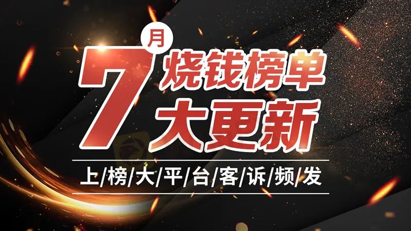 7月烧钱榜单新鲜出炉,新进榜平台占半数。本月烧钱榜暂无监管平台仅有两家,其他均有实际有效监管,但是其中几家曝光台客诉颇多,值得关注!