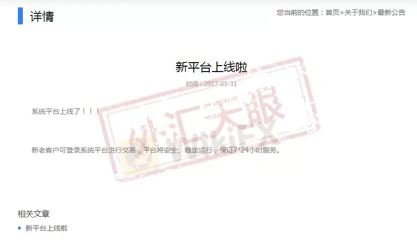 登上官网,你会发现这家官网实在做的太不“认真”了。 在“关于我们”的最新公告中,只有一条公告,还是2017年3月31日的,不说公司2017年根本没有创建也就罢了,你现编现造也好歹编个最近的。