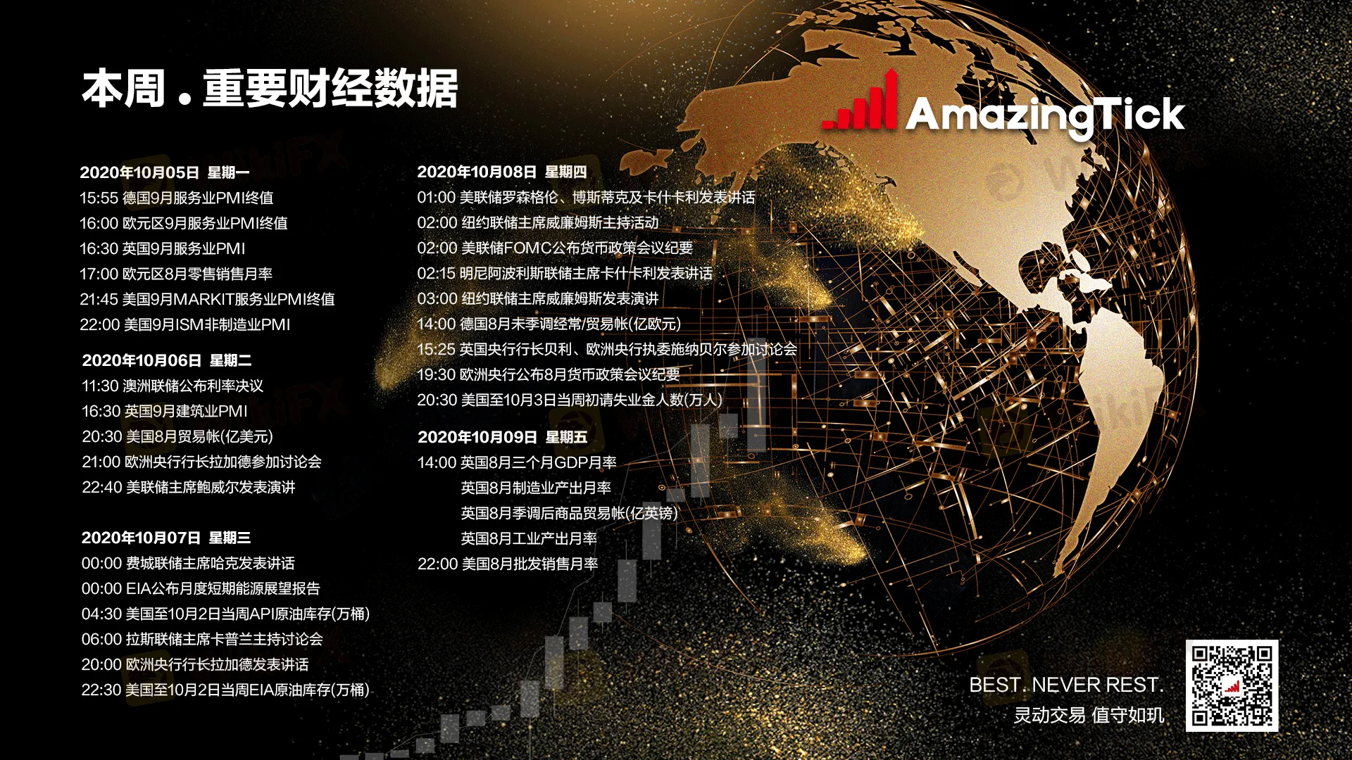 摘要:【AmazingTick财经日历】AmazingTick财经日历 | 2020年10月05日--2020年10月09日