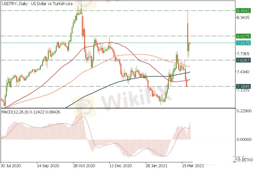 由于出来这么一个小小的“黑天鹅”。所以USDTRY在本周一开盘就跳空高开,从7.19到了8.46,这是非常可怕的,换句话说是土耳其又一轮金融风暴来了。很显然市场对于埃尔多安的这个意外之举非常恐慌,也许未来数月土耳其可能很快就会面临又一场货币危机 。