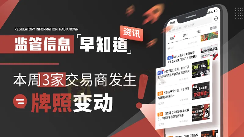 监管信息早知道!外汇天眼 将每周定期公布牌照发生变动的交易商,以供投资者参考,规避投资风险。