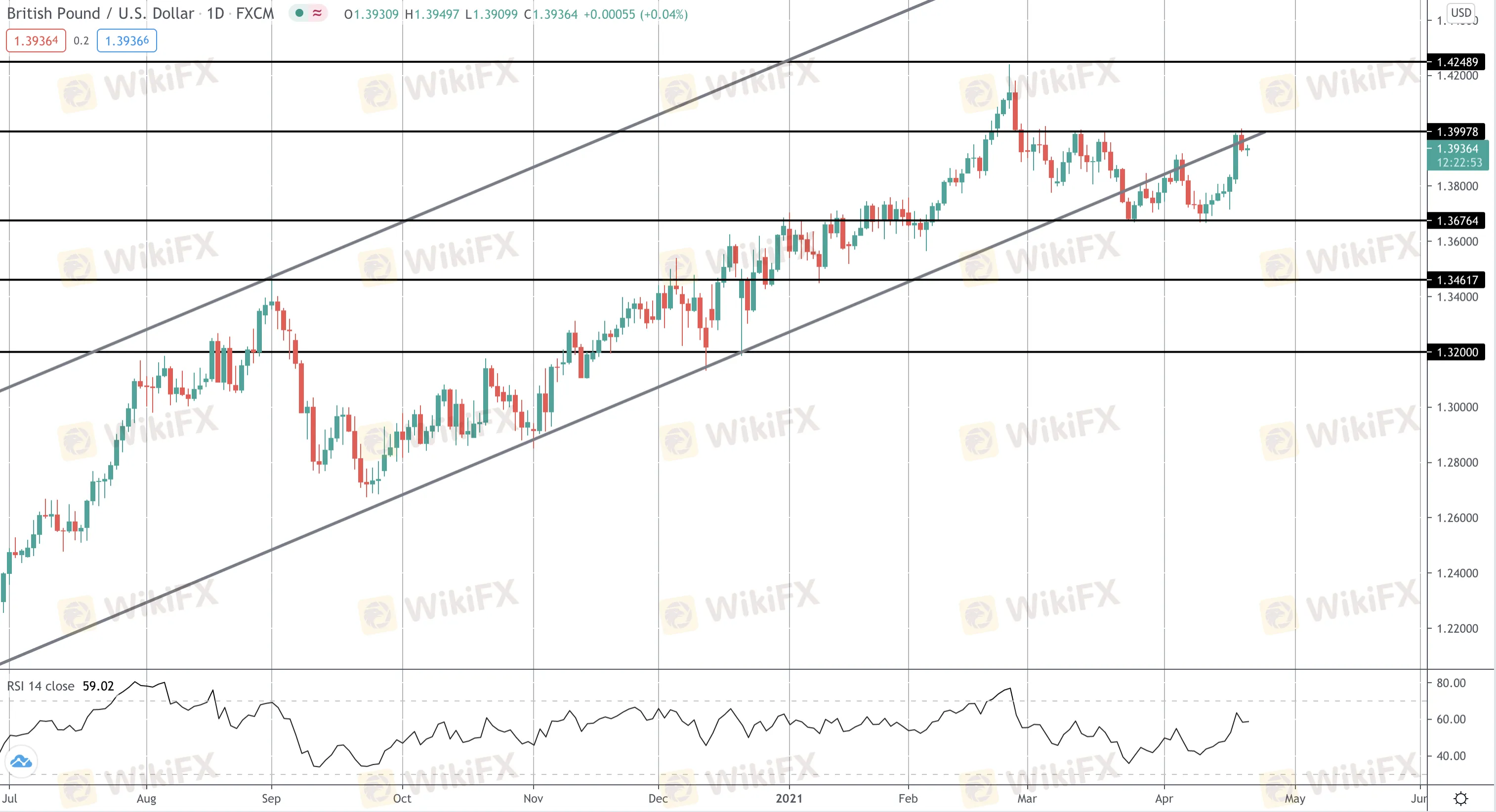由于对英国经济重新开放的乐观情绪以及美元疲软继续提振市场情绪,GBP本周一直走高。英国今日公布的最新通胀数据显示,3月份消费者物价确实如预期上涨。然而,该数据为0.7%,尽管较上月的0.4%有了明显增长,但仍低于市场预期的0.8%。与此同时,核心CPI与预期一致,当月为1.1%,高于上月的0.9%。