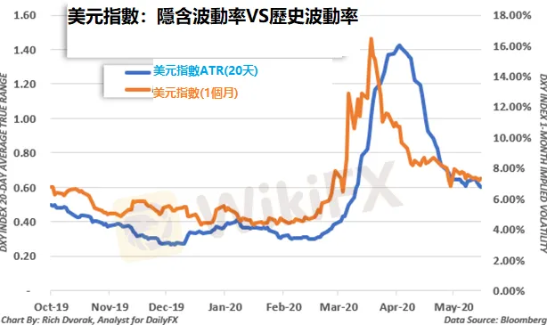 当存在与潜在市场较大的不确定性时,隐含波动率读数通常较高,并且通常围绕着经济数据发布或央行会议等其他预定风险事件。这可能会导致更大的价格波动,从而历史波动率读数也将随之走高。类似地,当历史波动性在平静的市场条件下保持稳定,当感知不确定性相对较低时,IV往往较低。