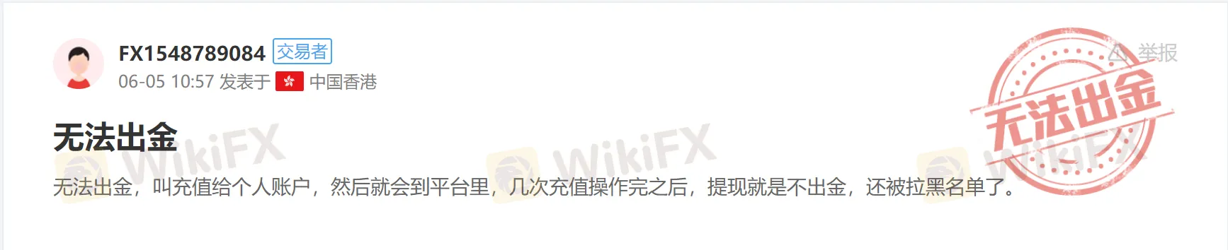 一位来自中国香港的汇友向外汇天眼爆料, ECN TRADE 交易平台给其提供了个人入金账户,当该汇友向 ECN TRADE 交易平台转入资金,并进行数次交易之后,发现平台不仅无法出金,资金账户也被拉入了黑名单。