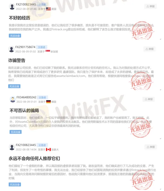 受害者爆料称在提出出金申请后,要么就是Xinhao International平台工作人员称需要追加更多的投资,要么就是联系不上平台,有的客户账户甚至被直接禁用,不能登录。