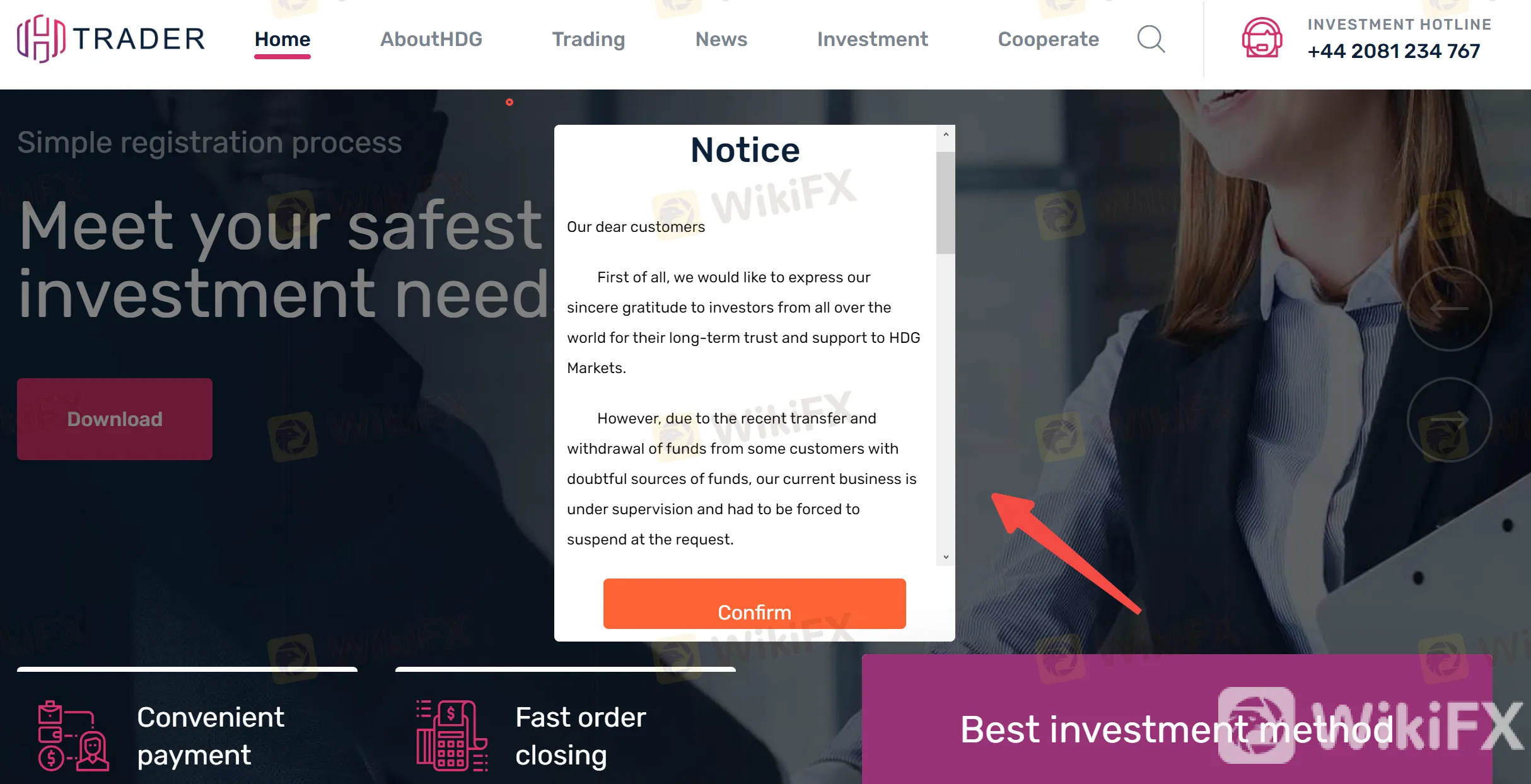 目前已无法出金!客服失联!HDG Markets停止营业!