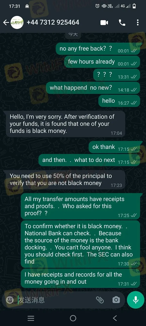 日前,一位来自马来西亚的投资者“dannychin”表示,自己在LEOM MARKET账户内的资金不能提现。LEOM MARKET告知dannychin他的资金是黑钱,需要他缴纳50%的本金来证实他的钱不是黑钱。