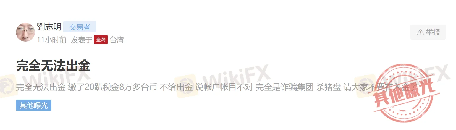 有用户在网上爆料在FinPros正当获利197 USD被平台死死卡住,说是在交易期间,平台侦测到有其他违规玩家打盘,所有盈利的人都不给出金。