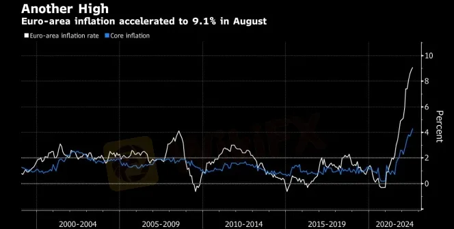欧元区通货膨胀8月加速至9.1%,核心通胀创4.3%的新高 _By Bloomberg
