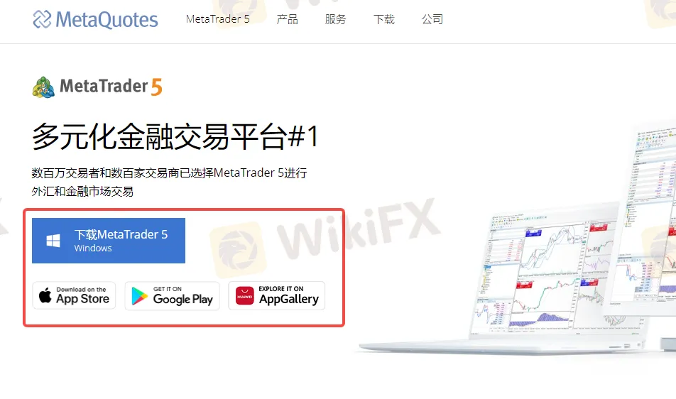 目前在MetaQuotes官网上,仍然能够看到首页上的MetaTrader 5推荐下载途径中,除了PC版本的Windows之外,还有移动端的谷歌的Google Play和华为的AppGallery。值得注意的是,目前App Store仍保留在推荐下载途径中,这可能意味着MetaQuotes并不想与APPLE彻底决裂。