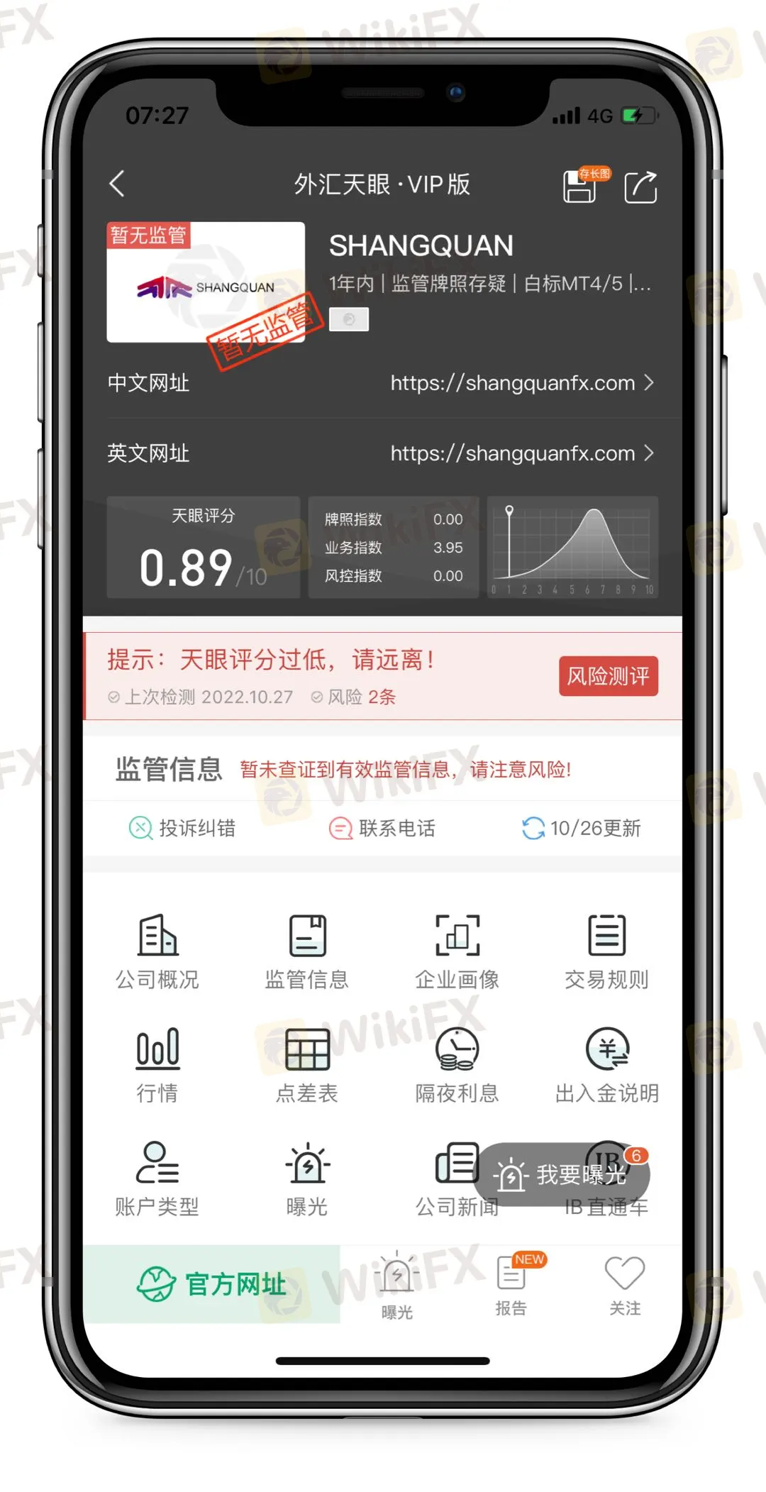 正所谓“投资千万条,出金第一条,平台不规范,被骗两行泪。”外汇天眼也在此提醒投资者在做外汇交易之前,一定要审核清楚外汇平台的资质以及官网信息,以防上当受骗。