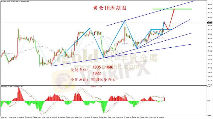 多单:1822.0附近尝试做多,止损1817.0,目标1828、1848.0附近。