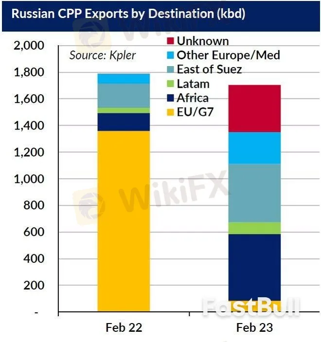 Gibson表示,直到今年2月,欧洲仍然是俄罗斯精炼石油产品的最大出口地,不过就在一个月的时间里,市场出现了重大的调整。
