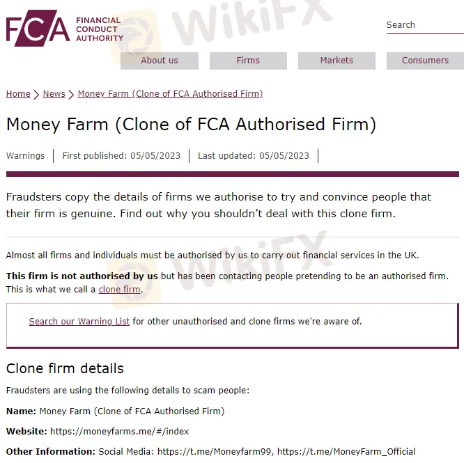 名称: Money Farm(FCA授权公司的克隆)